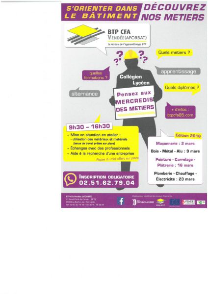 BTP CFA Vendée - ALFORBAT ouvre ses ateliers sur 4 mercredis.