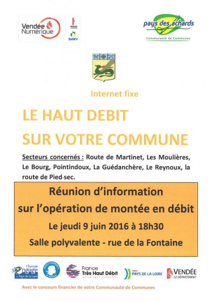 Réunion d'information "LE HAUT DEBIT" le jeudi 09 juin 2016 à 18 h 30 salle polyvalente - rue de la Fontaine SGP
